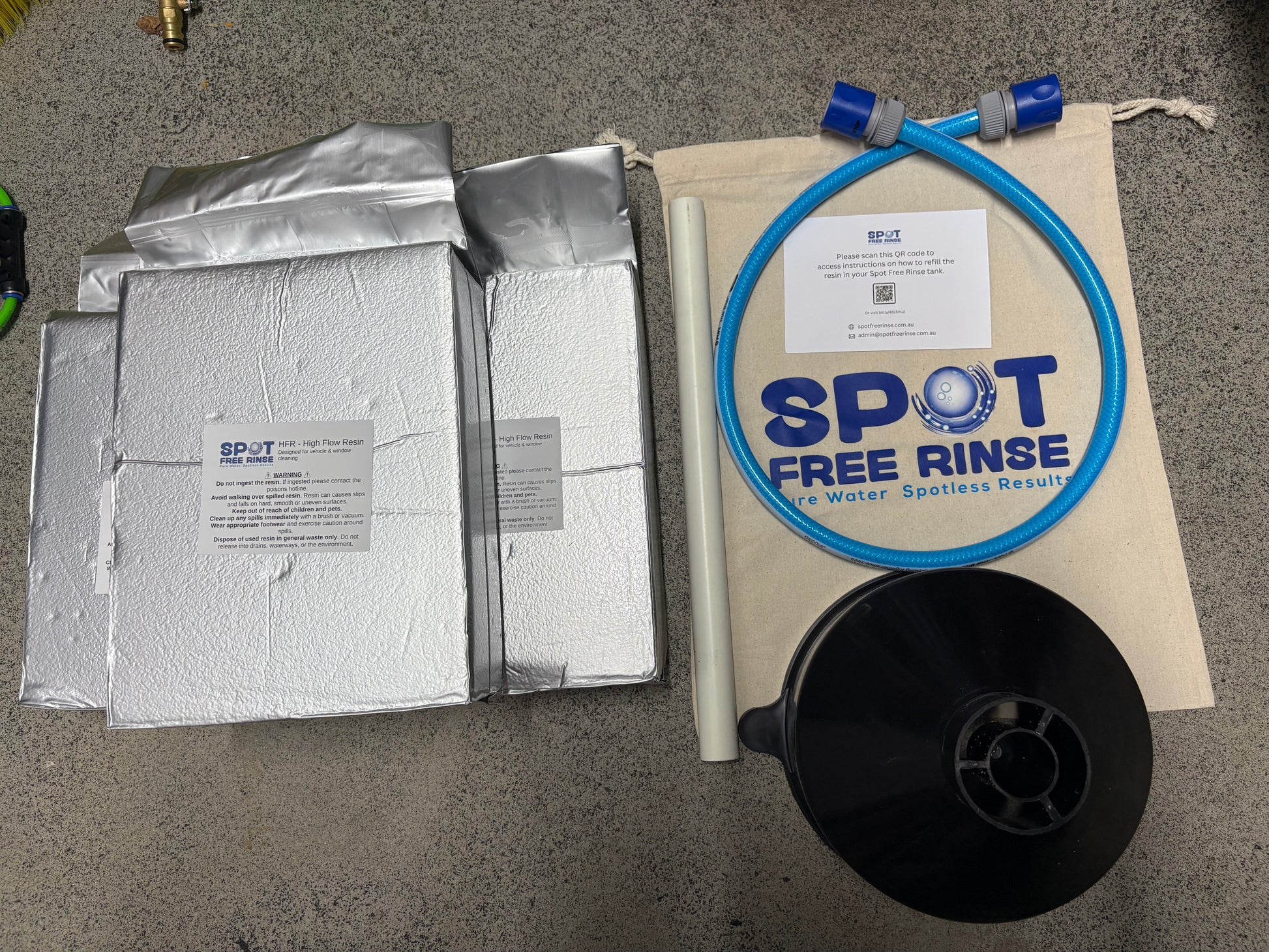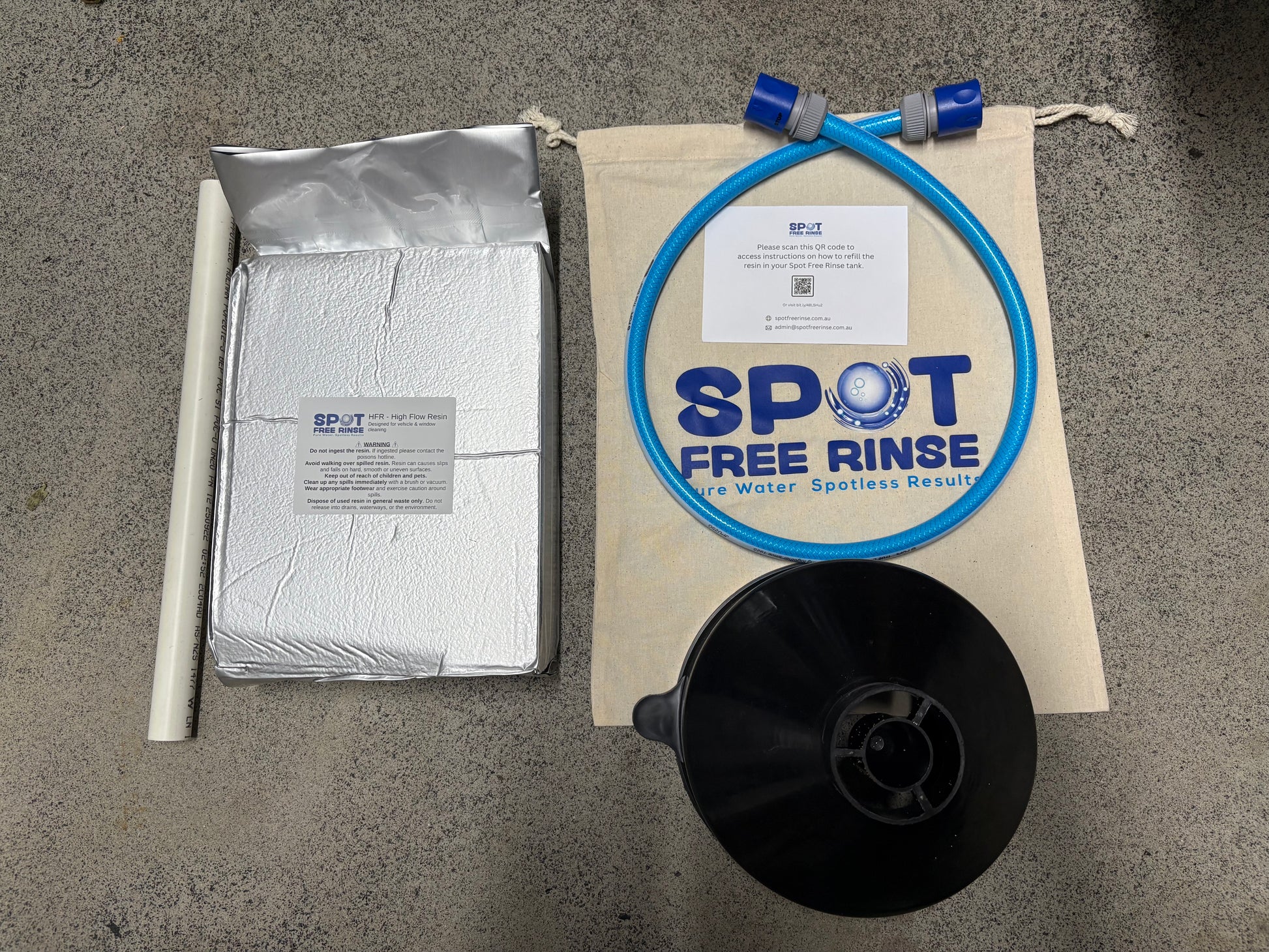 Keep your Spot Free Rinse system performing at its best with our Resin Refill Kits — built for users who demand the highest capacity and the cleanest finish. Whether you’re rinsing larger vehicles, boats, or expansive glass surfaces, fresh resin ensures every drop of water dries crystal clear.